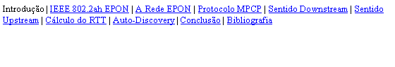 Em junho de 2004, o IEEE – entidade de classe que reúne profissionais da computação do mundo todo e responsável pela publicação de inúmeros padrões utilizados em engenharia e computação – aprovou o padrão denominado IEEE 802.3ah, que define protocolos e tecnologias para o Ethernet na Primeira Milha. As sub-áreas deste padrão abrangem ponto-a-ponto a cobre, ponto-a-ponto a fibra ótica, ponto-a-multiponto a fibra ótica e Operação, Administração e Manutenção (OAM – Operation, Administration, and Maintenance). As três primeiras sub-áreas tratam de topologias de acesso para o usuário e neste trabalho será abordada somente a ponto-a-multiponto a fibra ótica que constitui a EPON (Ethernet Passive Optical Network ou Rede Ethernet Ótica Passiva). |