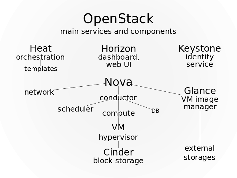 A arquitetura modular do OpenStack se evidencia pela existência dos seus componentes. Para cada projeto pode-se escolher a implantação de uma combinação de componentes. A sua escolha de componentes pode ter um impacto significativo sobre a concepção global do projeto.