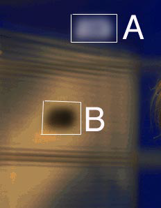 Uma das técnicas de filtragem e mascaramento é o método dos retalhos (patchwork). Ele utiliza uma estatística que tenha uma distribuição Gaussiana para incorporar uma marca d'água invisível na imagem. Esta estatística específica é utilizada para verificar a existência de uma assinatura digital na imagem. Neste método, em cada iteração dois conjuntos de pixels são escolhidos, um deles é ligeiramente iluminado e outro é escurecido pelo mesmo fator. Para selecionar os pontos da imagem a serem mascarados, é utilizado um gerador de números pseudoaleatórios. Na figura abaixo, é mostrado um exemplo de uma iteração do método dos retalhos, exagerado para fins de ilustração. O conjunto de pixels A é iluminado e o conjunto B é escurecido.