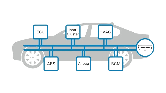 Unidades de Controle: Responsáveis por enviar e receber mensagens pela rede CAN. Podem ser diversos componentes do veículo, como o motor, transmissão, freios, airbags, entre outros. Cada unidade de controle é capaz de enviar mensagens para o barramento e receber mensagens de outras unidades, permitindo uma comunicação eficiente e flexível.