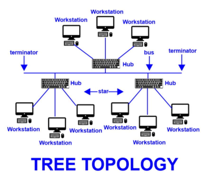 Topologia em árvore: Combina a topologia linear e em estrela. Permite a criação de sub-redes com topologias lineares ou em estrela, conectadas por um ou mais hubs. Adequada para redes CAN grandes e complexas, oferecendo maior flexibilidade.