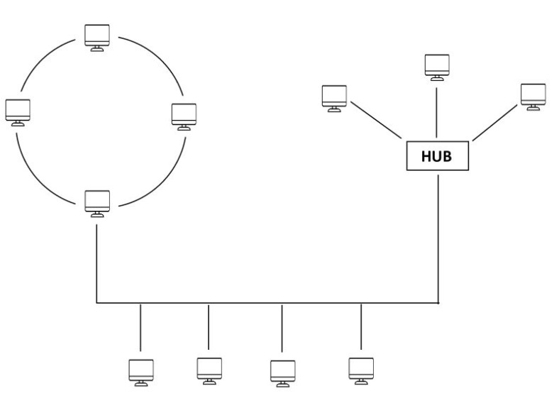 Topologia híbrida: Combina diferentes topologias (linear, estrela, árvore, etc.) para atender necessidades específicas de comunicação. Permite customização da rede para obter o melhor desempenho.