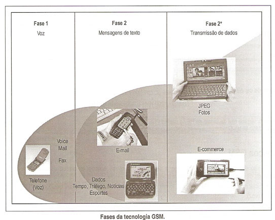 À medida em que cresce a demanda por novas aplicações, os serviços GSM vão sendo desenvolvidos. A tecnologia GSM é dividia em 3 fases, onde os novos serviços acabam por criar a próxima geração.