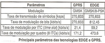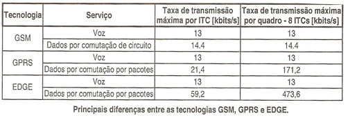 4.4 – Principais diferenças entre as tecnologias GSM, GPRS e EDGE