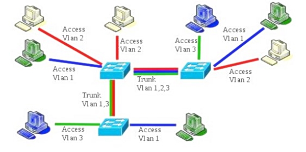 É um link ponto-a-ponto entre dois dispositivos de rede. Ambos devem ser VLAN-aware, ou seja, devem ser capazes de modificar o cabeçalho da tag, identificando os quadros do tipo VLAN. Um link de enlace pode ser configurado para duas ou mais VLANs, podendo trafegar dados de várias destas simultaneamente. Nesta situação, os dispositivos usam a regra de marcação, especificada no 802.1q [Cisco/Access Trunk].