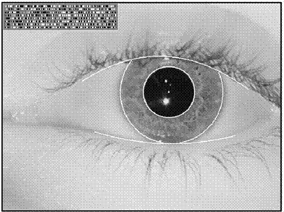 Esse operador é usado tanto para se encontrar os limites interior e exterior da íris. Quando a busca por esses limites tenha encontrado a precisão de um único pixel, um processo semelhante é realizado para se localizar as pálpebras superior e inferior. Como resultado dessas operações de localização temos o isolamento da íris das outras áreas da imagem, como na figura abaixo: