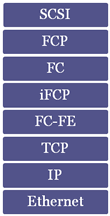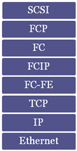 Na Figura 2.17, os comandos SCSI e dados são encapsulados no FCP antes do encapsulamento do FC. Este é o fator pelo qual o Fibre Channel tem um menor overhead.